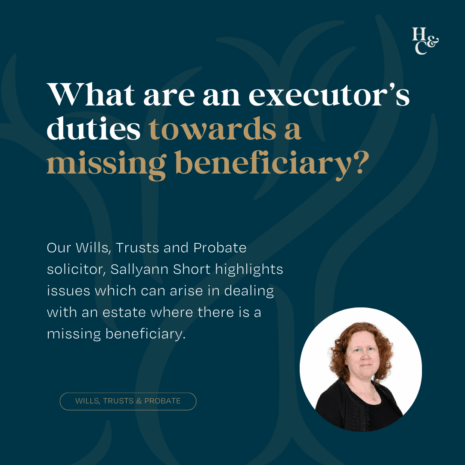 Our Wills, Trusts and Probate solicitor, Sallyann Short highlights issues which can arise in dealing with an estate where there is a missing beneficiary.